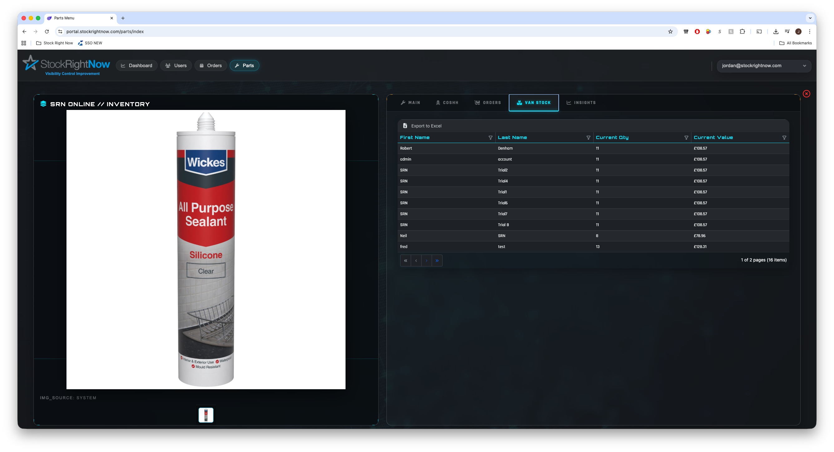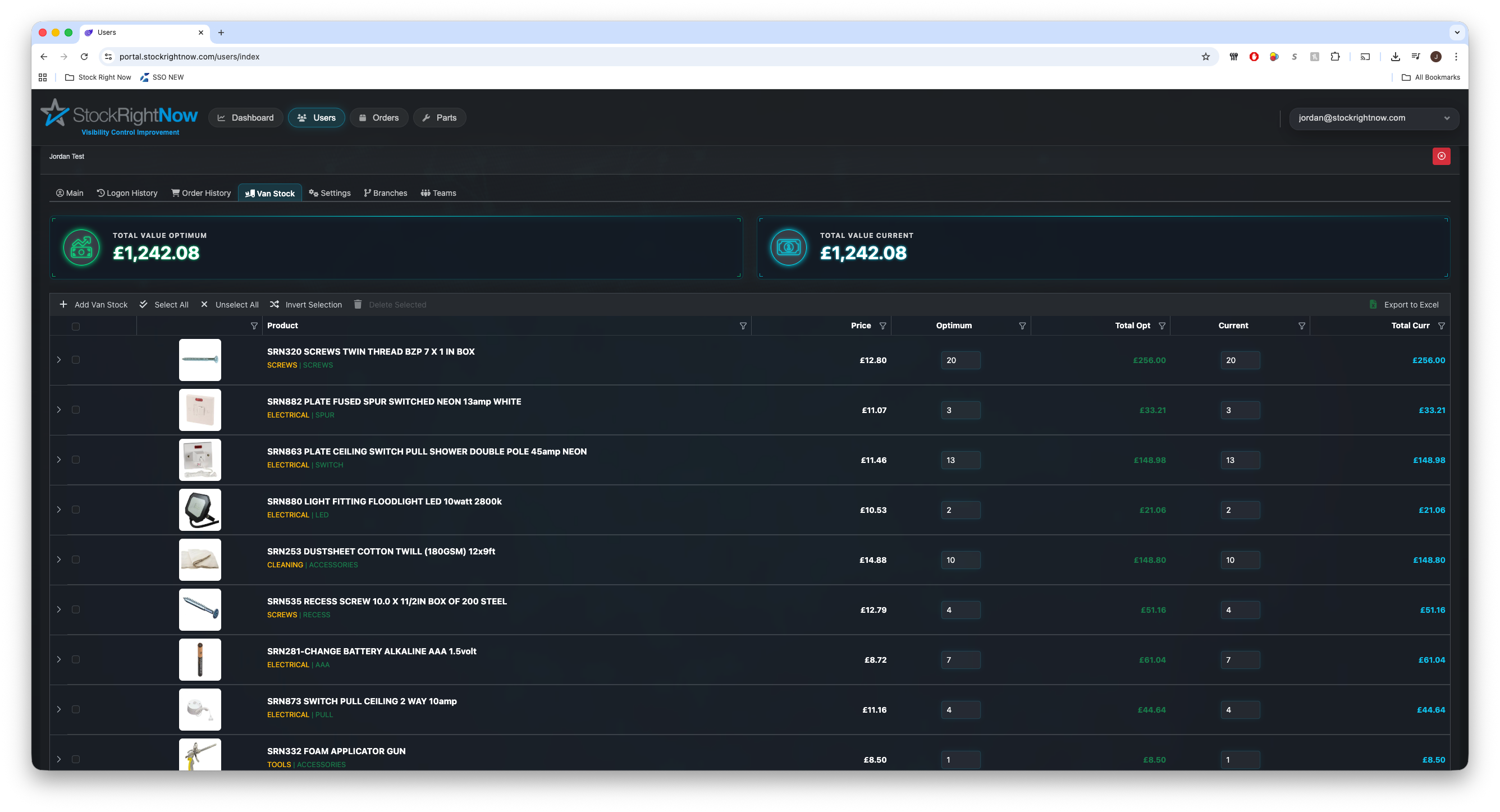 The system optimises visibility for items stored on vans, ensuring efficient inventory management.